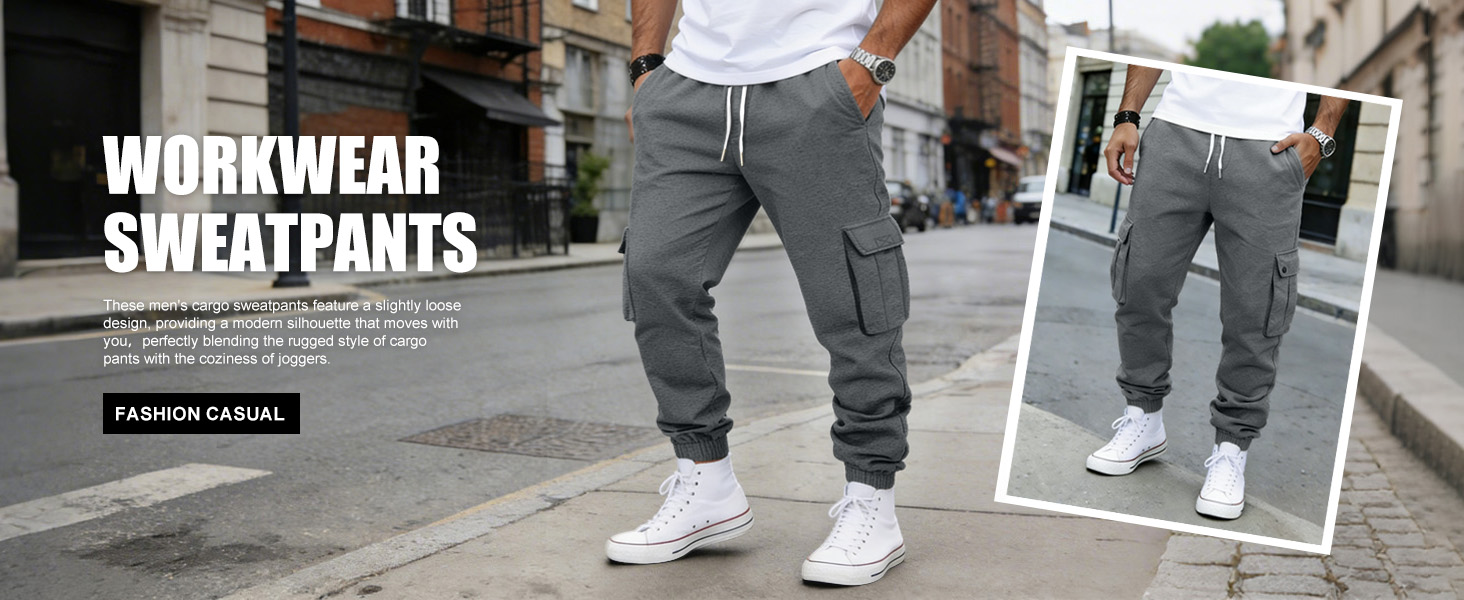 Engineered for Comfort: These men's cargo sweatpants feature a slightly loose design, providing a modern silhouette that moves with you. The soft, breathable fabric ensures all-day comfort, perfectly blending the rugged style of cargo pants with the coziness of joggers. Ideal for casual wear or outdoor running and other sports, they offer both versatility and a polished look.