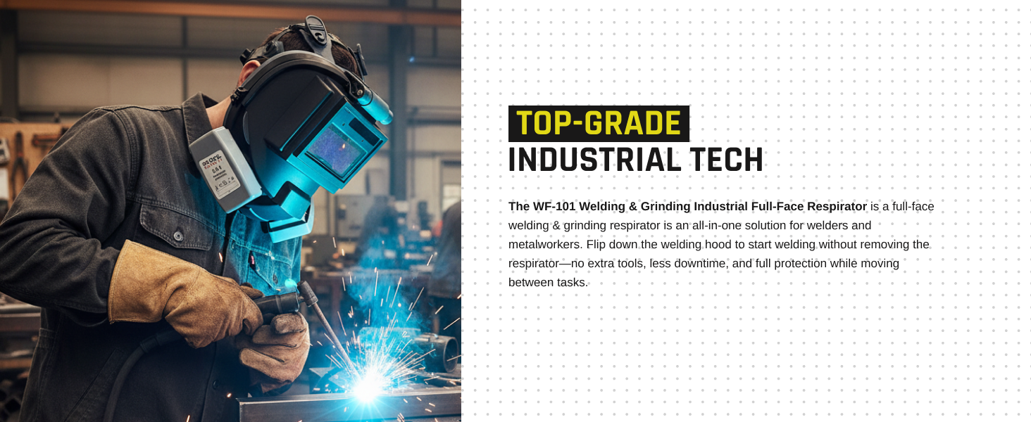 ALL-IN-ONE WELDING, GRINDING & RESPIRATORY PROTECTION: Replaces a traditional welding helmet, grinding face shield, and respirator mask in one compact system. Designed for welders, fabricators, and metalworkers who need full-face protection without changing gear between tasks.