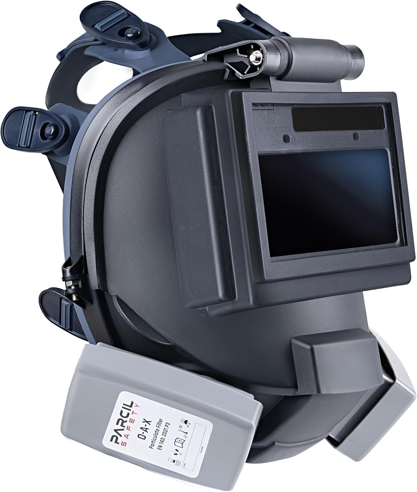 Parcil Distribution WF-101 Pro Full-Face Welding Respirator Shade 9 with Auto-Darkening Lens and O-A-X Cartridges with Flip-Up Welding Hood- 99.9% Particulate, Organic Vapor, Acidic Filtration