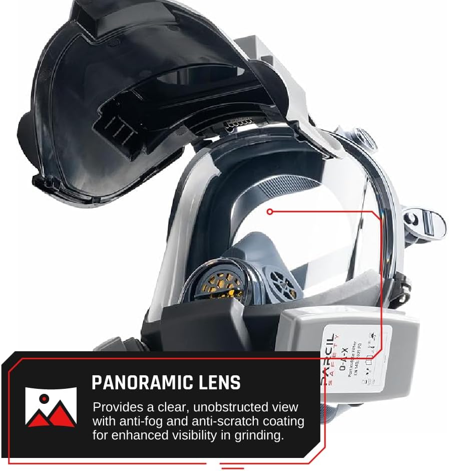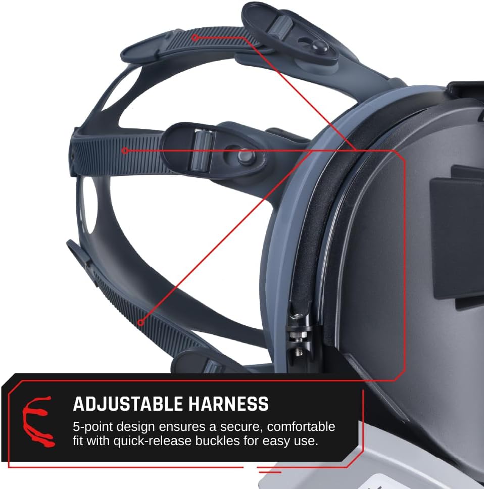INDUSTRIAL-GRADE FULL-FACE SEAL & COMFORT FIT: The ergonomic full-face respirator design provides a secure seal while evenly distributing weight for extended wear. Adjustable multi-point head harness and quick-release buckles allow fast on/off without compromising fit or stability.