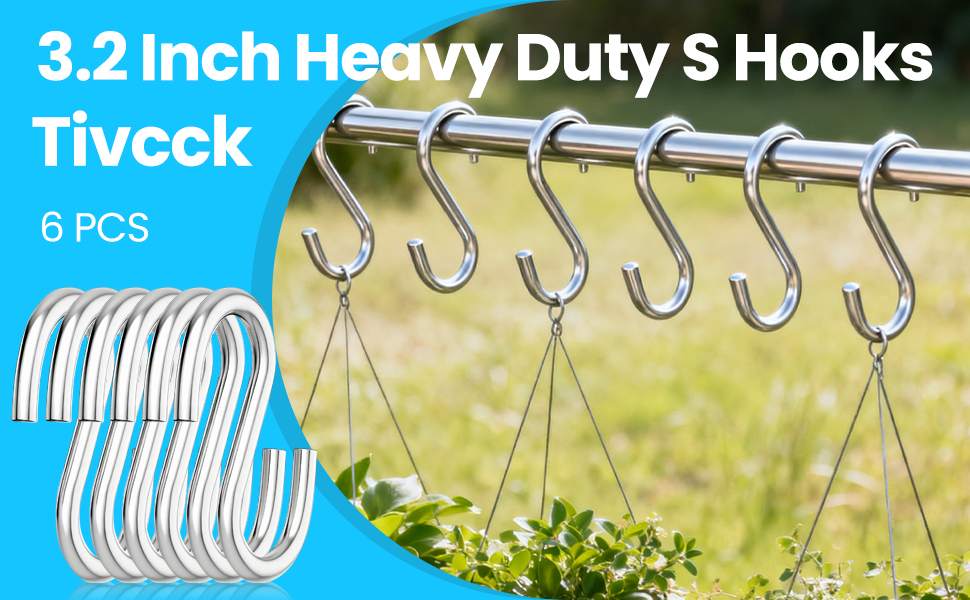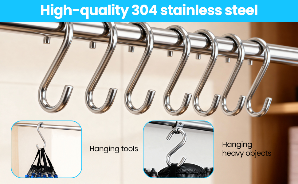 Wide Applications: These 304 stainless steel S hooks are ideal for marine and water sports, garage, workshop, and shed organization, as well as for hanging hammocks, swings, planters, flower baskets, and cast iron pots