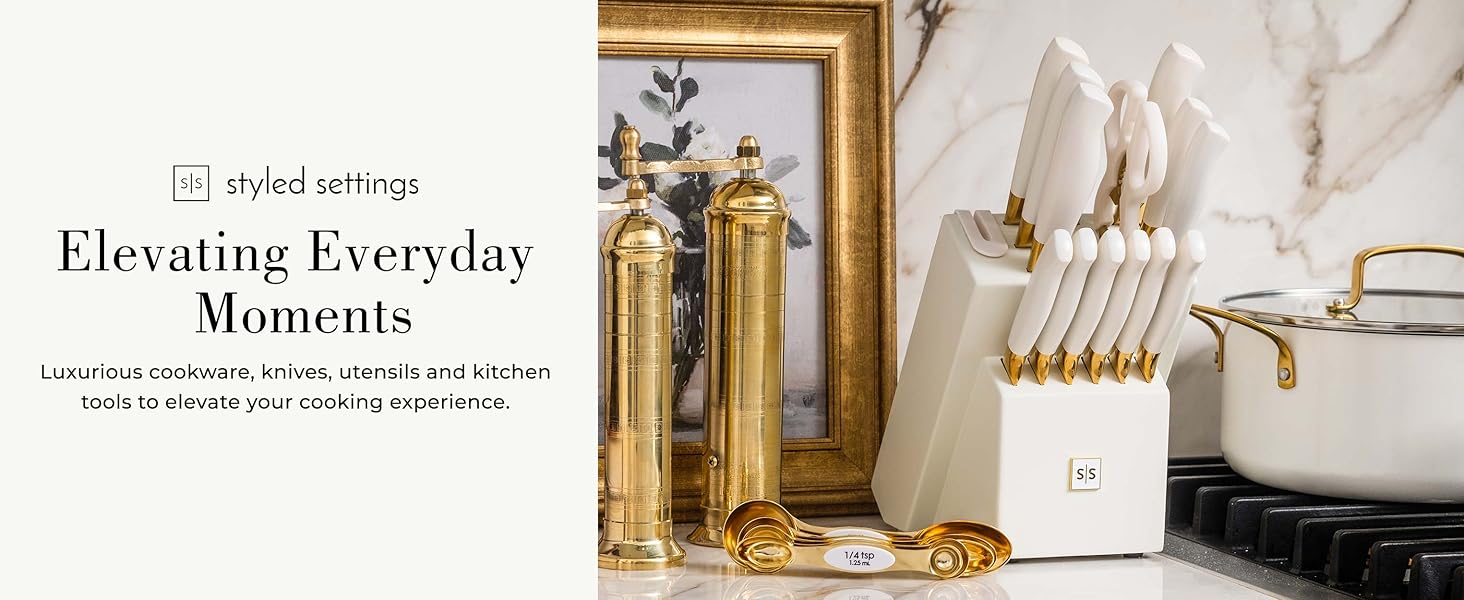 Looks Luxe, Sharpens Like a Pro—Thanks to the Built-In Sharpener: Yes, it's a total showpiece—but it's practical too. The sleek white knife block comes equipped with a built-in sharpener for your straight-edge blades, helping you keep your white and gold knives in peak slicing form without hunting down another gadget. Because staying sharp should be effortless—and still look good on your counter.