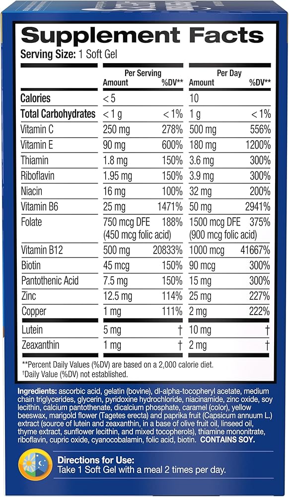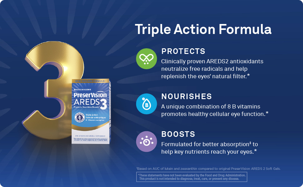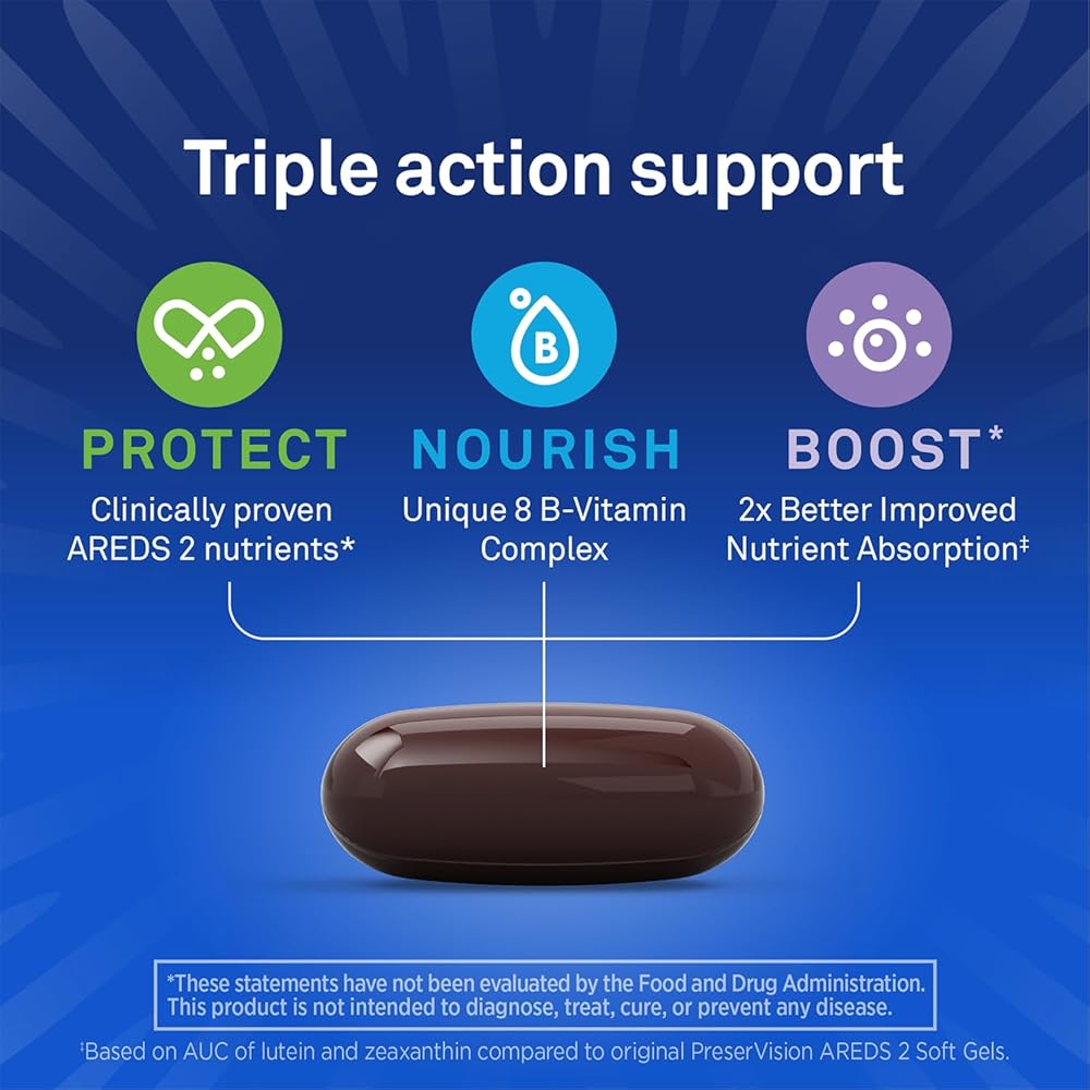 Triple-Action Advanced Formula: Our enhanced blend adds B vitamins that work differently than, and in combination with, PreserVision AREDS 2 clinically proven nutrients.