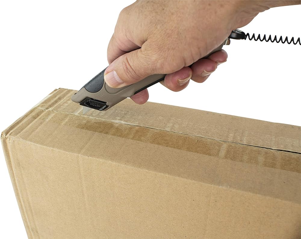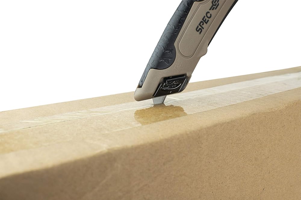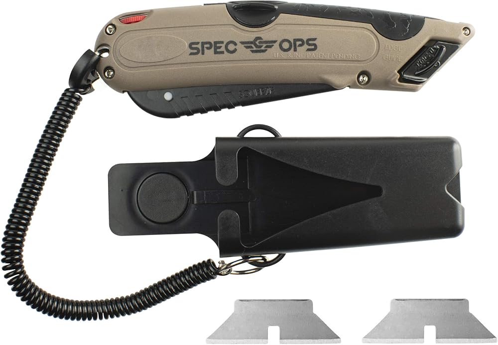 Doubling as a box cutter, this safety knife features a patented radius-tip blade for increased safety and product protection while cutting materials such as cardboard at any warehouse or workplace. These Spec Ops tools feature two edge guides for quick and accurate top cuts with a safe blade lock that allows for reduced risk of accidental blade exposure. The secure grip of this handle is designed with an ergonomic, squeeze-action blade trigger for ultimate control on any project. The three blade depth settings are manufactured to accommodate various box sizes while the tape splitter enables quick-action tape cuts. To comfortably accommodate both left and right-handed users, this knife features a versatile snap on holster and lanyard system. All Spec Ops tools are backed by our five-star, hassle-free lifetime warranty, and with each purchase made, we support our nation's heroes by donating 3% of proceeds to veteran and first responder causes.