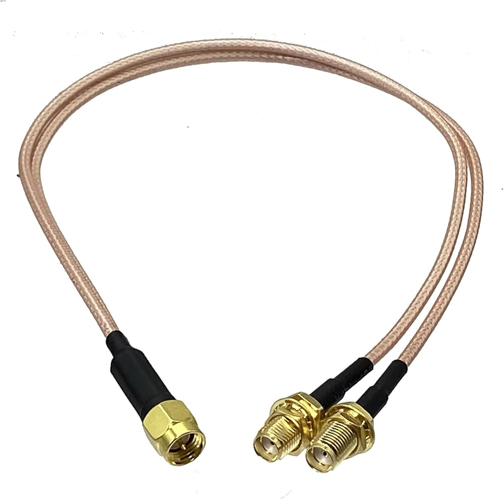 RG316 male plug and female jack Y-splitter connector, crimp terminals, patch cords, pigtail cables, 4 inches to 10 feet