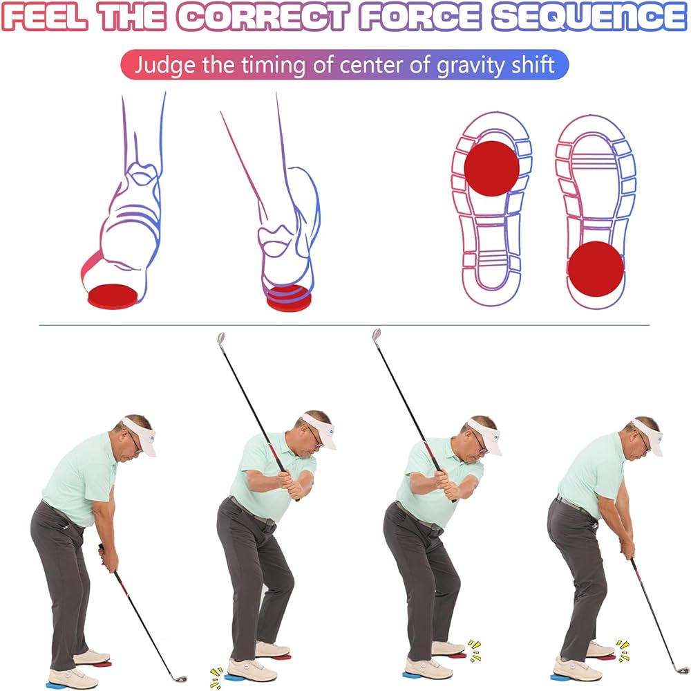 【Ground Reaction Force】By using the Golf training foot pads training, control the swing rhythm, enhance the reaction force on the ground, improve the sense of timing, enhance rotation, and accurately judge whether the center of gravity is transferred correctly.