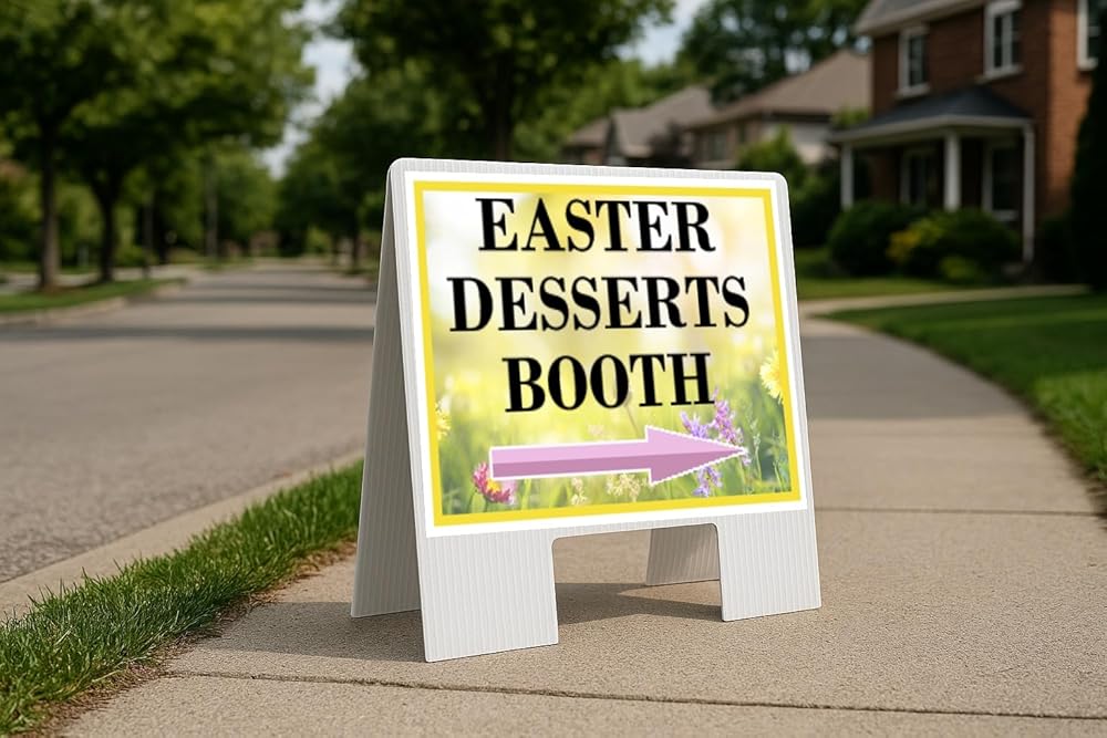 Easter Desserts Booth Spring Flowers Yellow Field Directional Arrows A-Frame Double Sided 23x23 in. sign