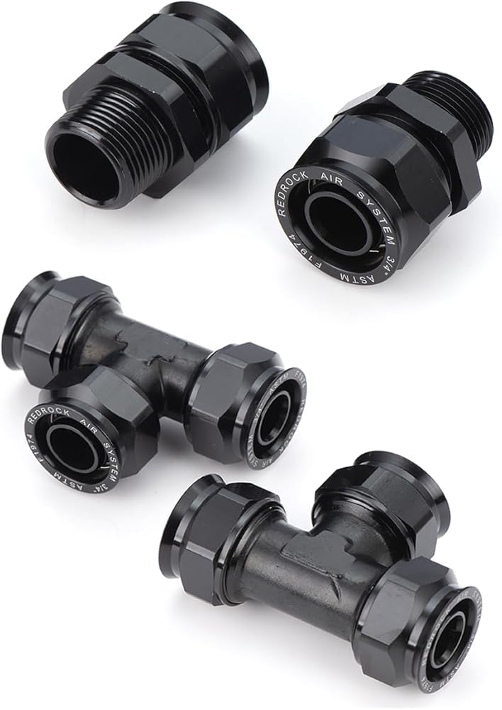 Redrock Performance 3/4" Straight Fitting with 1/2" Male NPT(2PCS) and 3/4" Equal Elbow Fitting Set(2PCS),crafted using high-grade Aluminum, Brass and nitrile, this seven-piece construction ensures durability and strength.