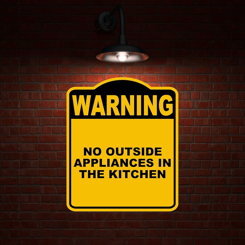 NO OUTSIDE APPLIANCES IN THE KITCHEN Warning Yellow Black Aluminum Composite Sign 8.5 x 10 inches