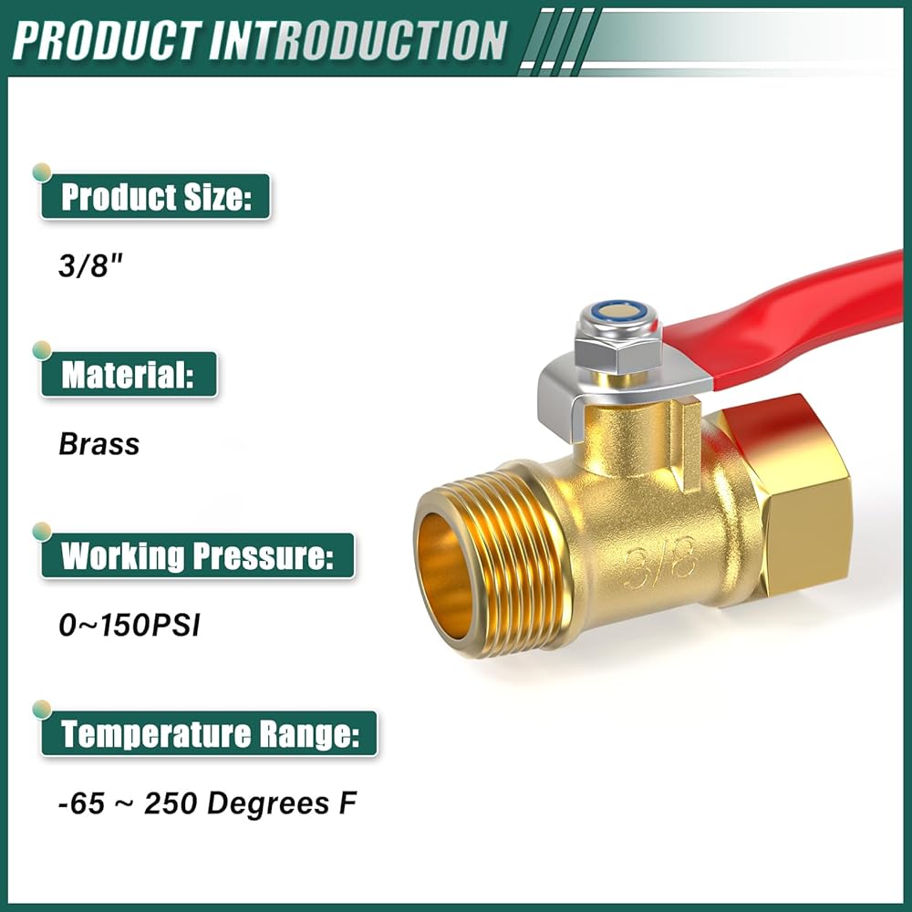 2PCS Heavy Duty Brass Mini Ball Valve, 3/8" NPT Male x Female Shut Off Switch, for Air Compressor Thread Pipe Fitting