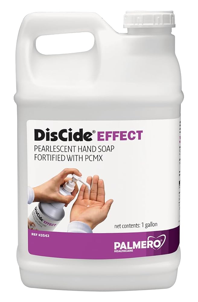 DisCide Effect Professional Hand Asepsis Soap 1 gallon bottle. Contains aloe vera, vitamin E and a fresh almond scent to promote healthy skin and staff compliance. 1 Gallon Bottle. Soothes and moisturizes hands. Presents pleasant odor. Provides fast drying time. Its enriched formula contains aloe vera extracts and vitamin E to deliver a soothing and moisturizing effect on the hands. Achieve compliance to guidelines on hand asepsis through instant drying. Guarantee user satisfaction with a pleasant fragrance.