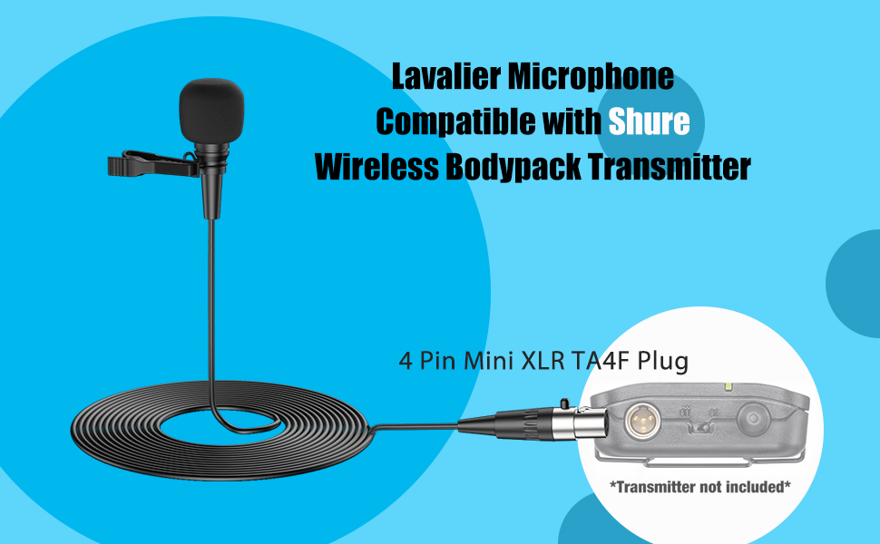 Compatibility & Power Requirements . TA4F Mini XLR connector with 3.28ft(1m) cable . Exclusive Shur System Compatibility: Works with L1, 11, LX1, SC1,U1, UC1 series and PGX/BLX/SLX/ GLX/ULX/QLX/ULXD/UHF-Rwireless systems . Critical Note: This condenser microphone requires phantom power and is ONLY compatible with Shur systems - internal wiring differs from other brands