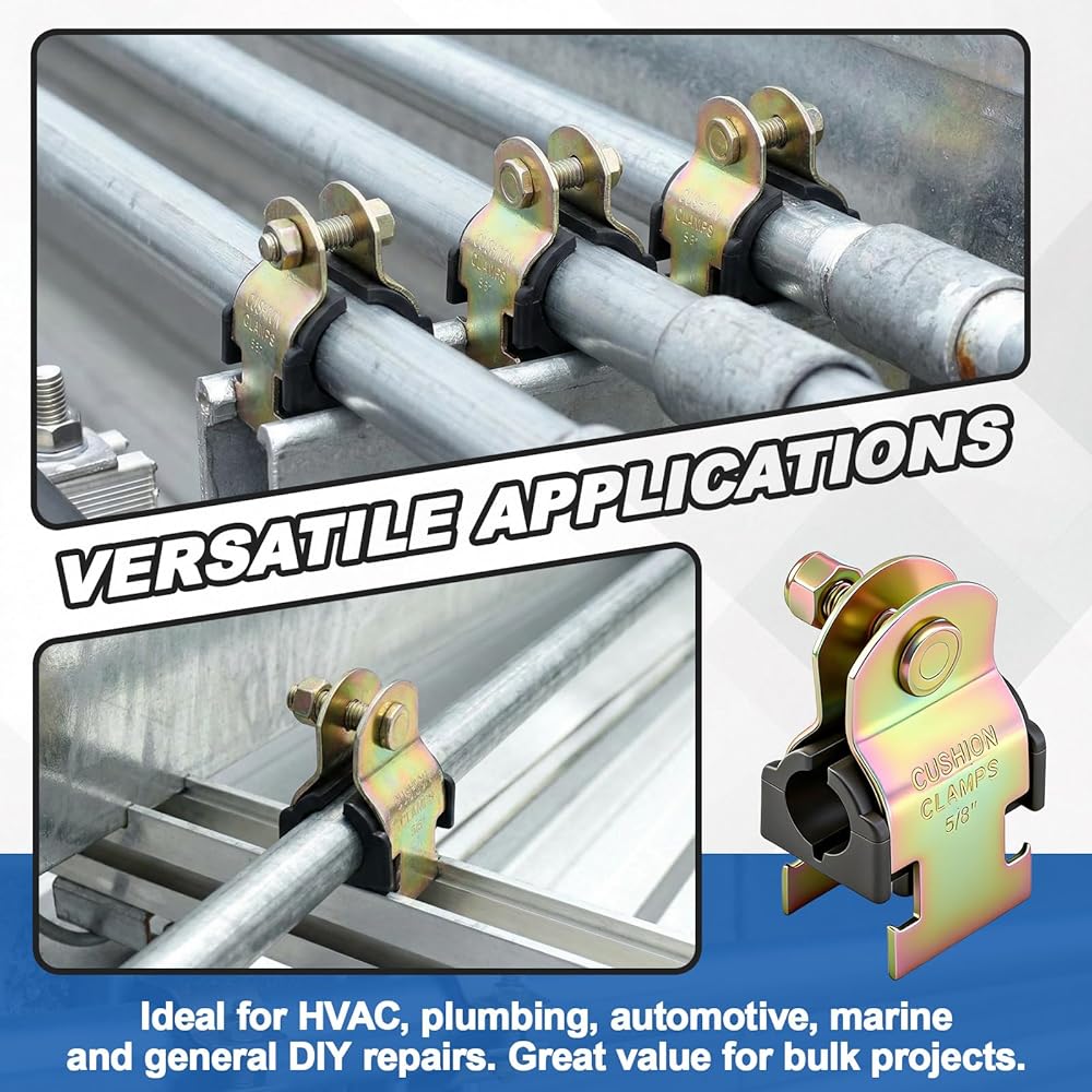 These clamps are applicable for a variety of settings, from home DIY repairs to commercial mechanical installations. Their design supports use in batch projects, which can help streamline the organization of plumbing and electrical runs.