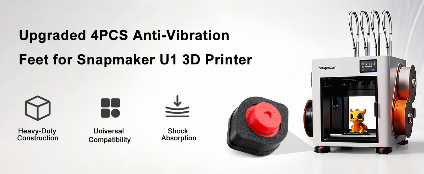 Perfect Compatibility for Snapmaker U1 3D Printer: 4PCS anti-vibration feet absorb shocks, reduce shaking, ensure smooth prints and less printer wear, no adjustments needed.