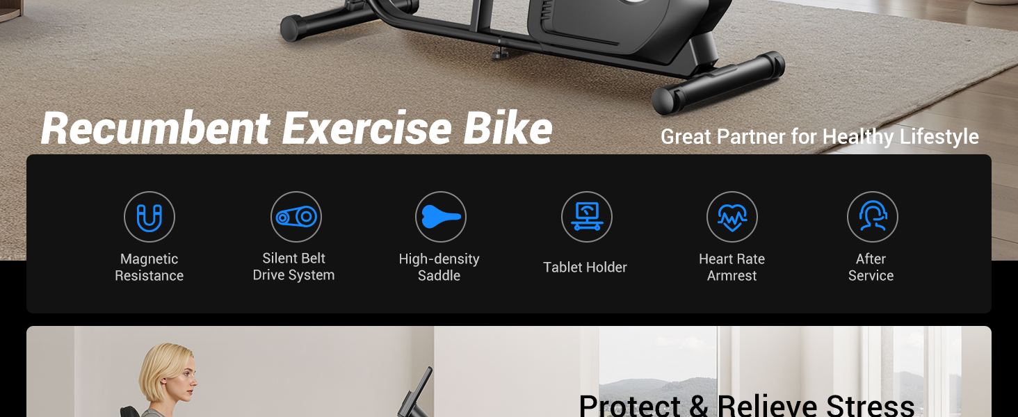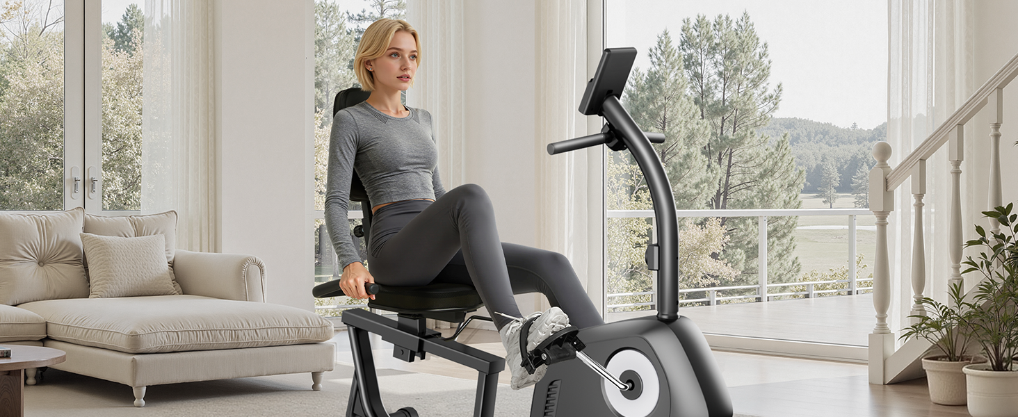 Easy to Assemble & Move: This recumbent stationary bike is 85% pre-assembled for stress-free setup, typically taking just 30 minutes. Equipped with front transport wheels, it's easy to move the exercise bike around your home gym or living room. A perfect gift for anyone looking for convenience and flexibility in their exercise bikes for home routine