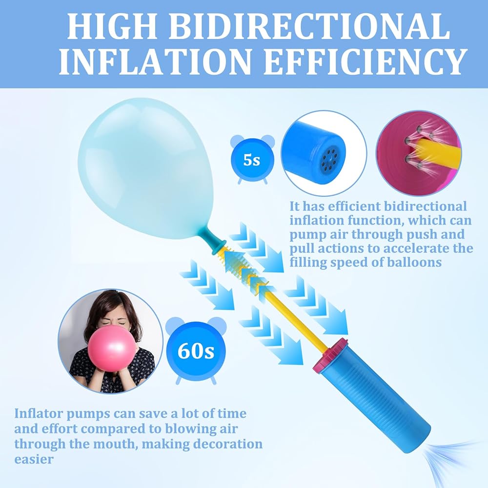 Balloon Pump Hand 3pcs Two-Way Dual Action -Balloon Hand Pump Manual Air Blower for Balloons for Latex, Aluminum Foil Balloons, Swimming Rings and Inflatable Mattresses (Blue Pink/1.9 * 10.8 Inches)