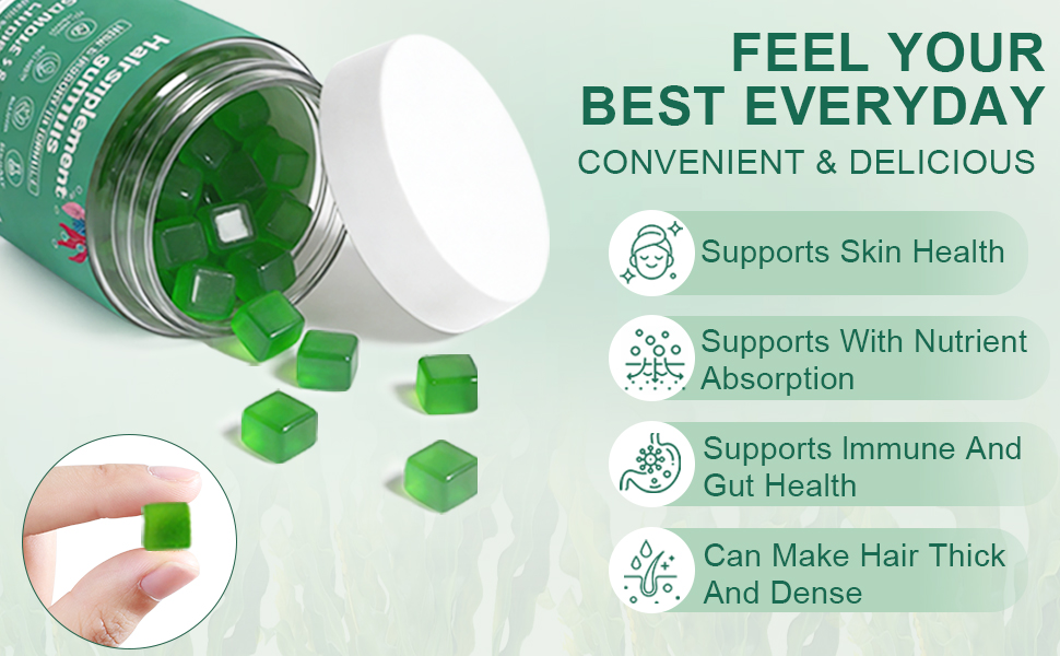 【Enhances Skin Health】Infused with aloe vera and pearl powder, these gummies promote radiant, glowing skin. Regular consumption helps reduce blemishes, improve skin elasticity, and maintain a youthful complexion.