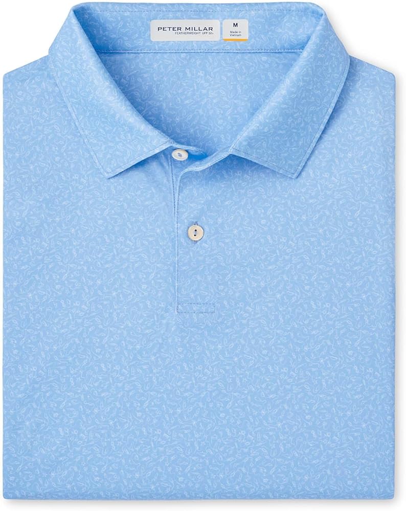 100% Polyester Featherweight construction Four-way stretch, moisture-wicking, odor-resistance properties, quick-dry, easy-care UPF 50+ sun protection Nautical rope print Sean self-fabric collar, two-button placket Machine wash cold with like colors; tumble dry low Do not iron; do not dry clean