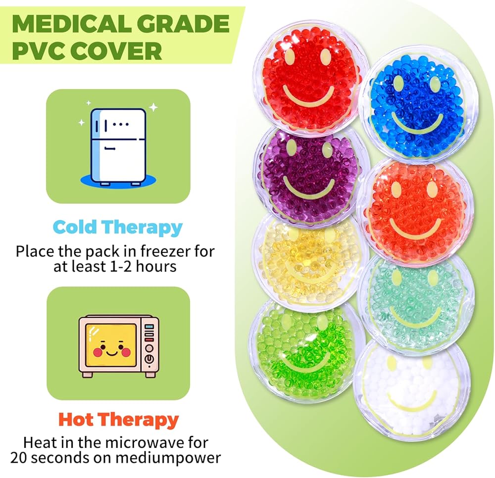 kids adore this playful smile ice pack with 8 cheerful colors! The 3D texture make cooling fun for lunchboxes, minor bumps, or classroom rewards. Non-toxic, BPA-free gel ensures safe use for sensitive skin.