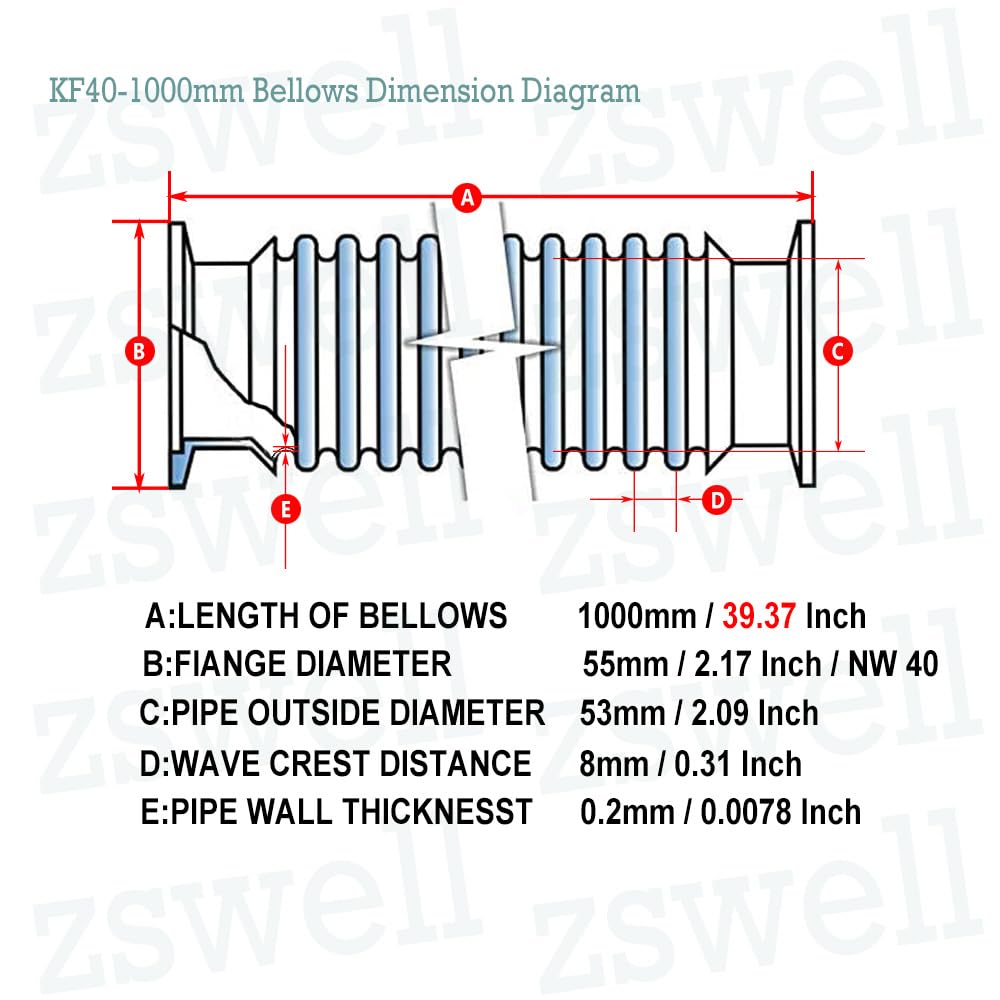 Easy Installation & Compatibility: Standard KF40 flange interface and 1000mm length ensure universal compatibility with most vacuum equipment, enabling quick, hassle-free assembly without additional adapters.