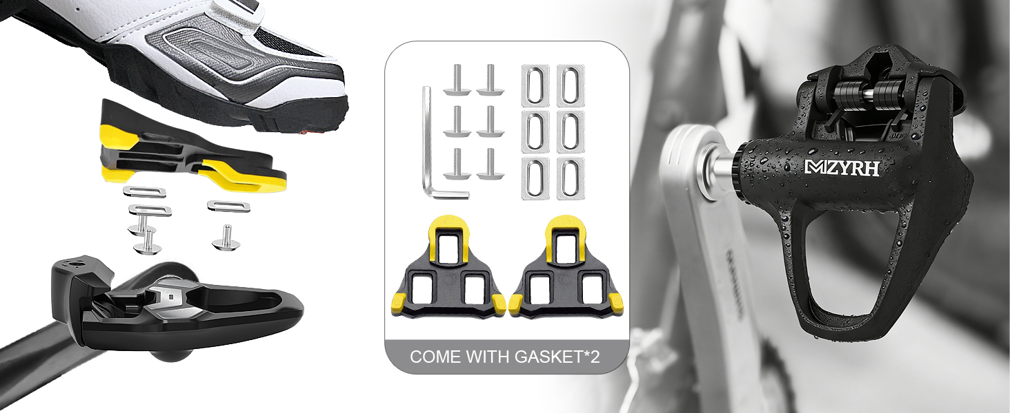【PACKAGE CONTENT】: 1 set of pedals, 1 pair of cleats, 6 screws, 6 washers, instructions for use. If you have any problem for our road bike pedals or you need any help, please contact us with no hesitation , we will provide you problems within 24 hours.