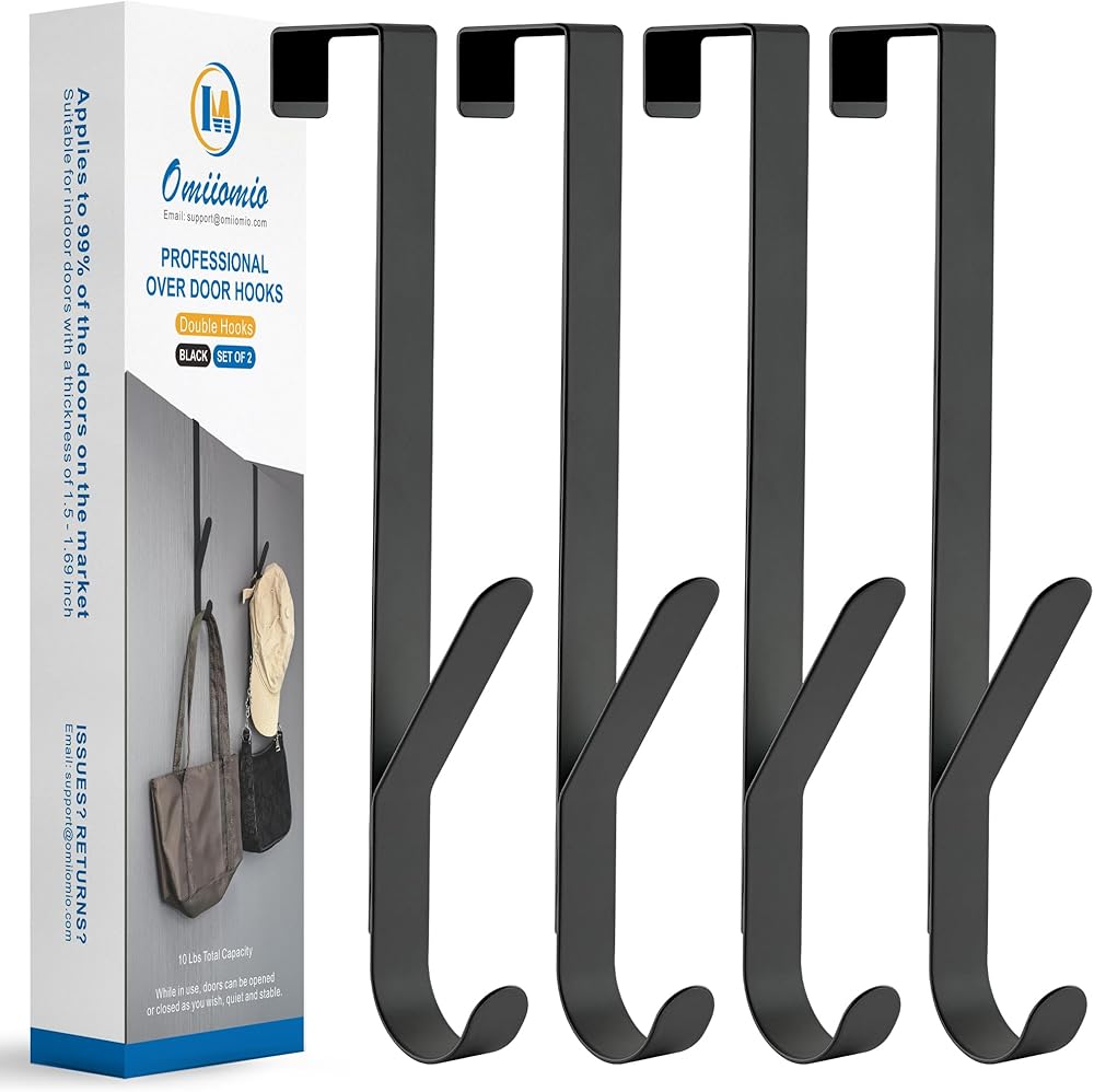【What You Get】: Set of 4 OIM OMIIOMIO Over The Door Hook(Double hooks design), This set can make full use of the space behind the door and keep your room organized without messy