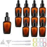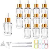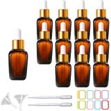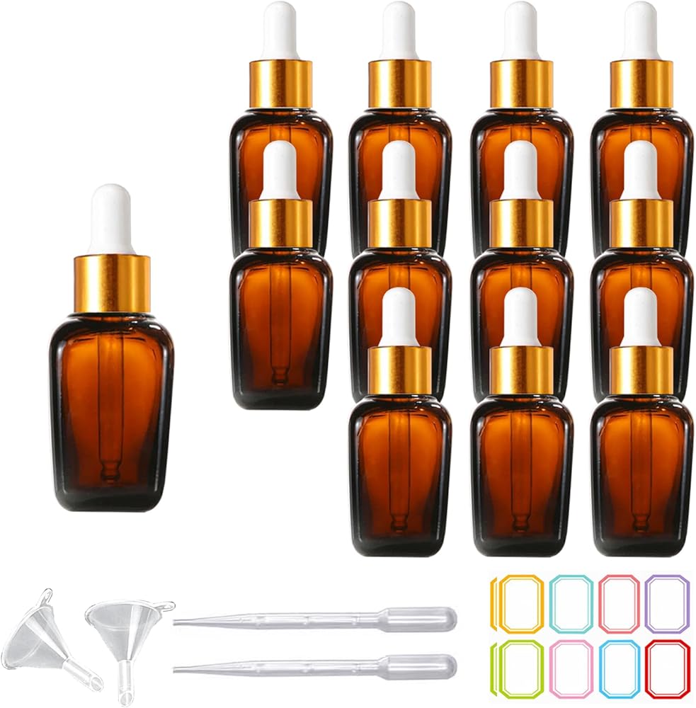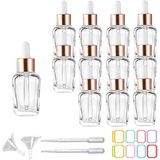 Package Includes:12 Clear square glass bottles, glass droppers and rose gold caps set, with 2 funnels, 2 pipettes, and 16pcs labels to that will allow you to effectively organize and store all your essential.