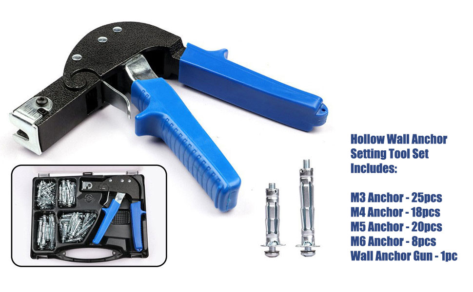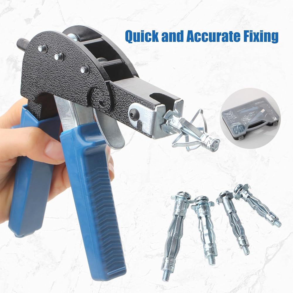Heavy Duty Wall Anchor Setting Tool: Designed for hollow wall, drywall,plasterboard fixings. The wall anchor gun is made of Grade 50 hardened carbon steel with high-strength aluminum alloy components and non-slip PVC grips, ensuring durability and comfortability