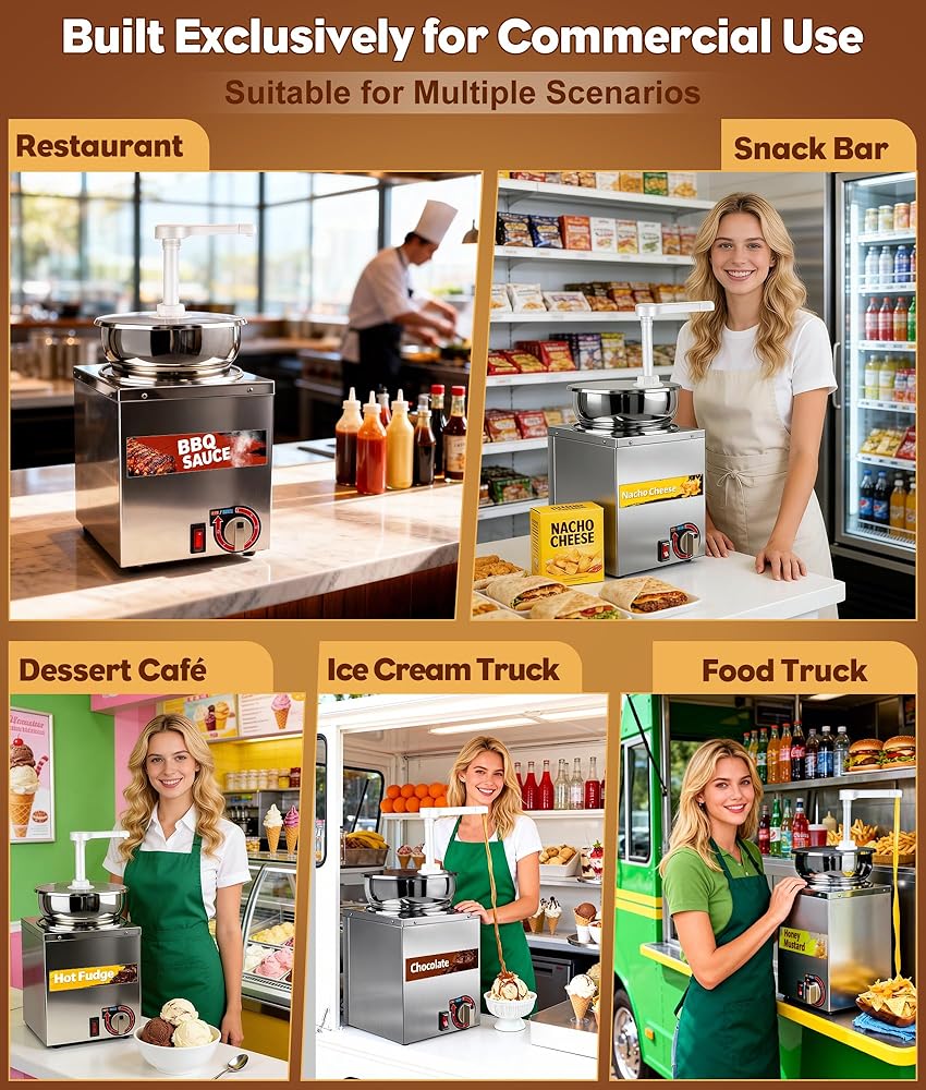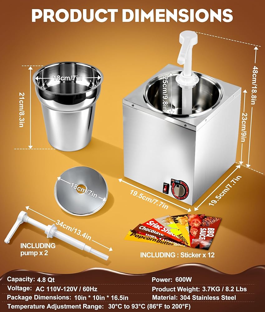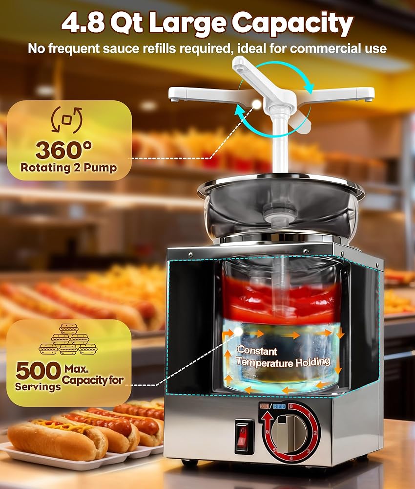 Boasting a 4.8-quart commercial-grade capacity, this sauce warmer serves up to 500 portions effortlessly. Its pump delivers accurate 1–30 cc portions per press, making it perfect for concession stands, catering events, and home parties alike.