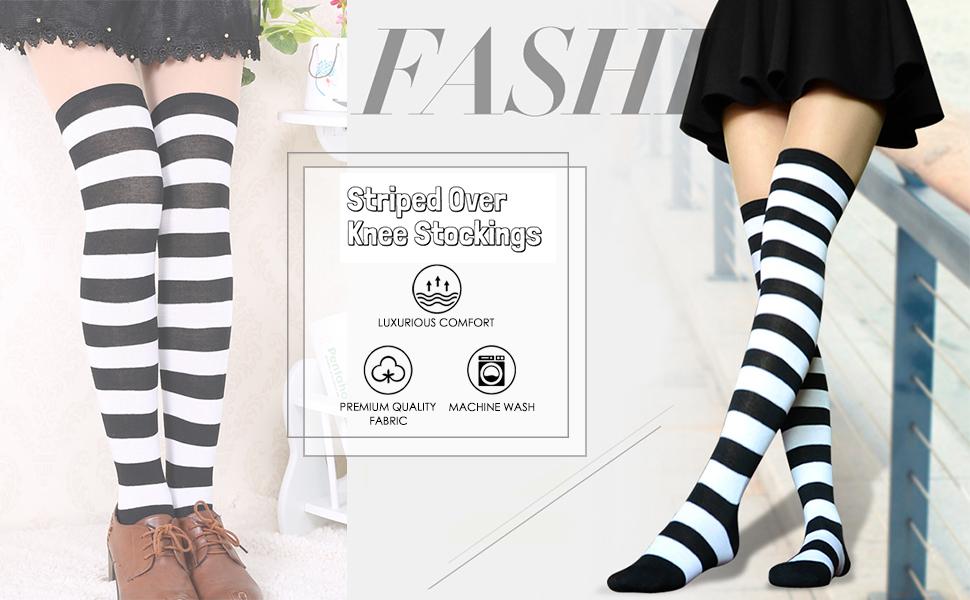 QUALITY MATERIAL: Our high knee socks are made of 80% cotton, 17% polyamide, and 3% spandex to ensure that they are soft, comfortable, stretchy, and breathable. They won't fade and are machine washable.