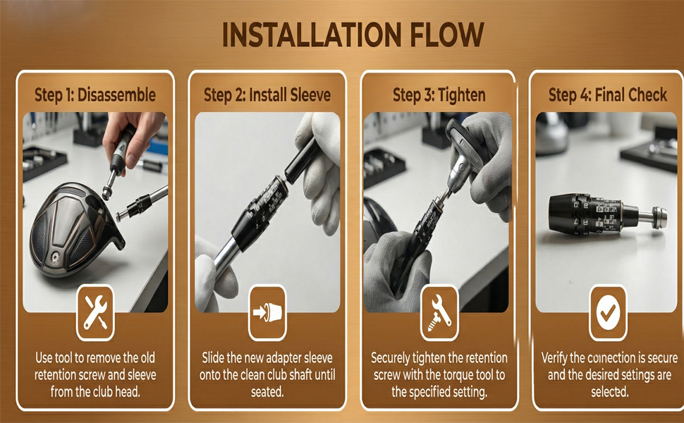 • 4: محتوى العبوة المبسط - يتضمن كل طلب قطعة واحدة من محول كم عمود الجولف، بما يتوافق مع اختيارك للتركيب المباشر والاستخدام الفوري