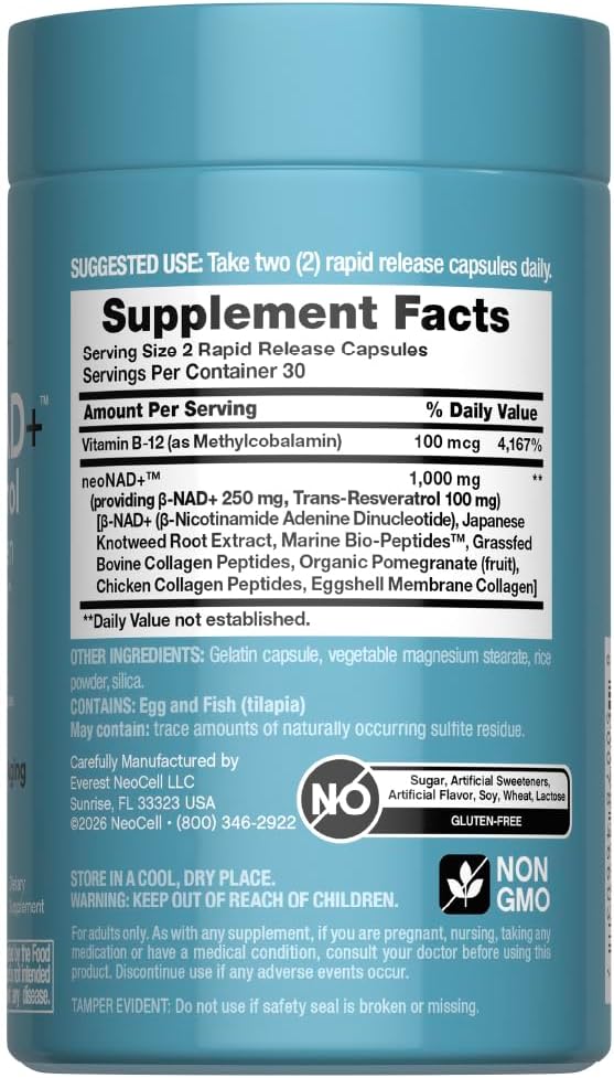 Gluten Free: At NeoCell, quality ingredients are non-negotiable. Gluten free, wheat free, soy free, and lactose free.