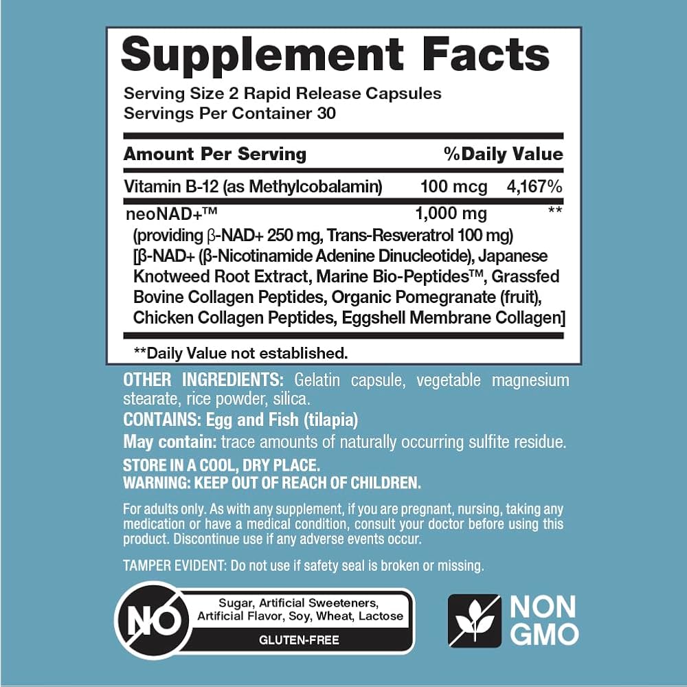 Beneficial Blend: Each serving delivers a synergistic blend of beta-NAD+ (250 mg), 100 mcg B12, and 100 mg of trans-resveratrol, designed to support healthy aging and cellular energy.*