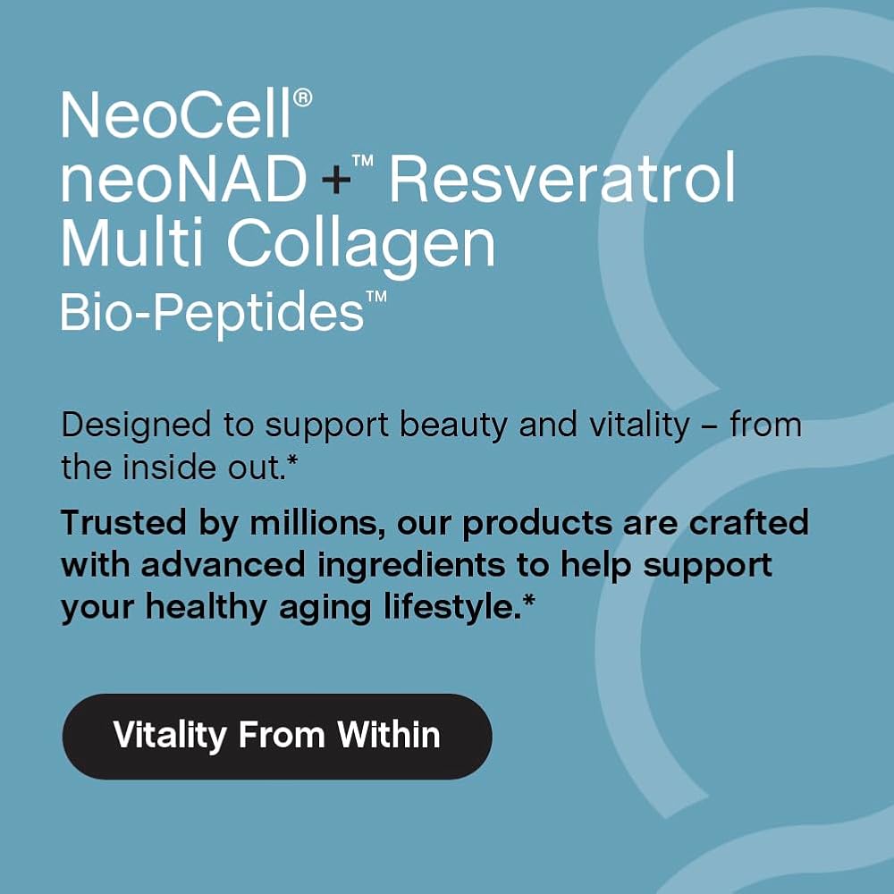 A Smarter Way to Support Healthy Aging* Healthy aging starts at the cellular level. NeoNAD+ Resveratrol Multi Collagen Bio-Peptides is thoughtfully formulated to support healthy aging and cellular energy – helping your body thrive as the years go by.* An Advanced Blend At the heart of this formula is neoNAD+, a proprietary blend that brings together NAD+, trans-resveratrol, and Multi Collagen Bio-Peptides sourced from marine, grassfed bovine, chicken, and eggshell membrane; as well as Japanese knotweed root extract and pomegranate. One Formula. Multiple Benefits. Rather than juggling multiple supplements, NeoNAD+ Resveratrol Multi Collagen Bio-Peptides delivers support in one thoughtfully designed formula. Support cellular energy and receive antioxidant support in the convenience of one formula.* *These statements have not been evaluated by the Food and Drug Administration. This product is not intended to diagnose, treat, cure, or prevent any disease. **Compared to non-enzymatically treated gelatin.