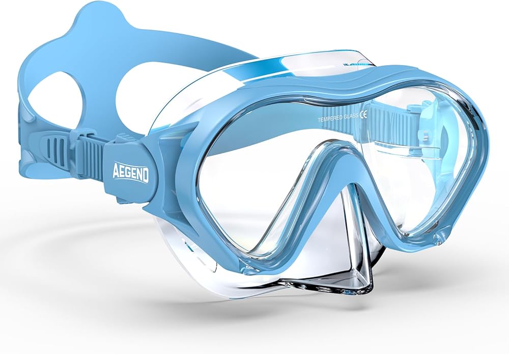 🏊【Panoramic HD Wide View, Anti-Fog, No Raccoon Eyes 】Aegend kids diving mask offer an ultra-wide 180° wide view, giving you a crystal-clear and expansive perspective of your surroundings, safer to swim. One piece glass design enables better and wider vision under water. Engineered with clear anti-fog lenses, these goggles keep vision sharp for underwater explore without fogging issues. The soft silicone doesn't leave marks on face after wearing, suitable for all face shapes.