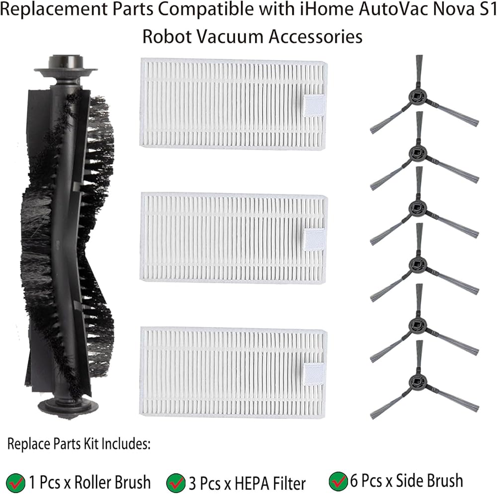 Exclusively Compatibility: Fit for iHome AutoVac Nova S1 Pro robot vacuum accessory. Replacement Parts iHRVS1PRO-3BLK, iHRVS1-3BLKS, iHRV9-BLKS.