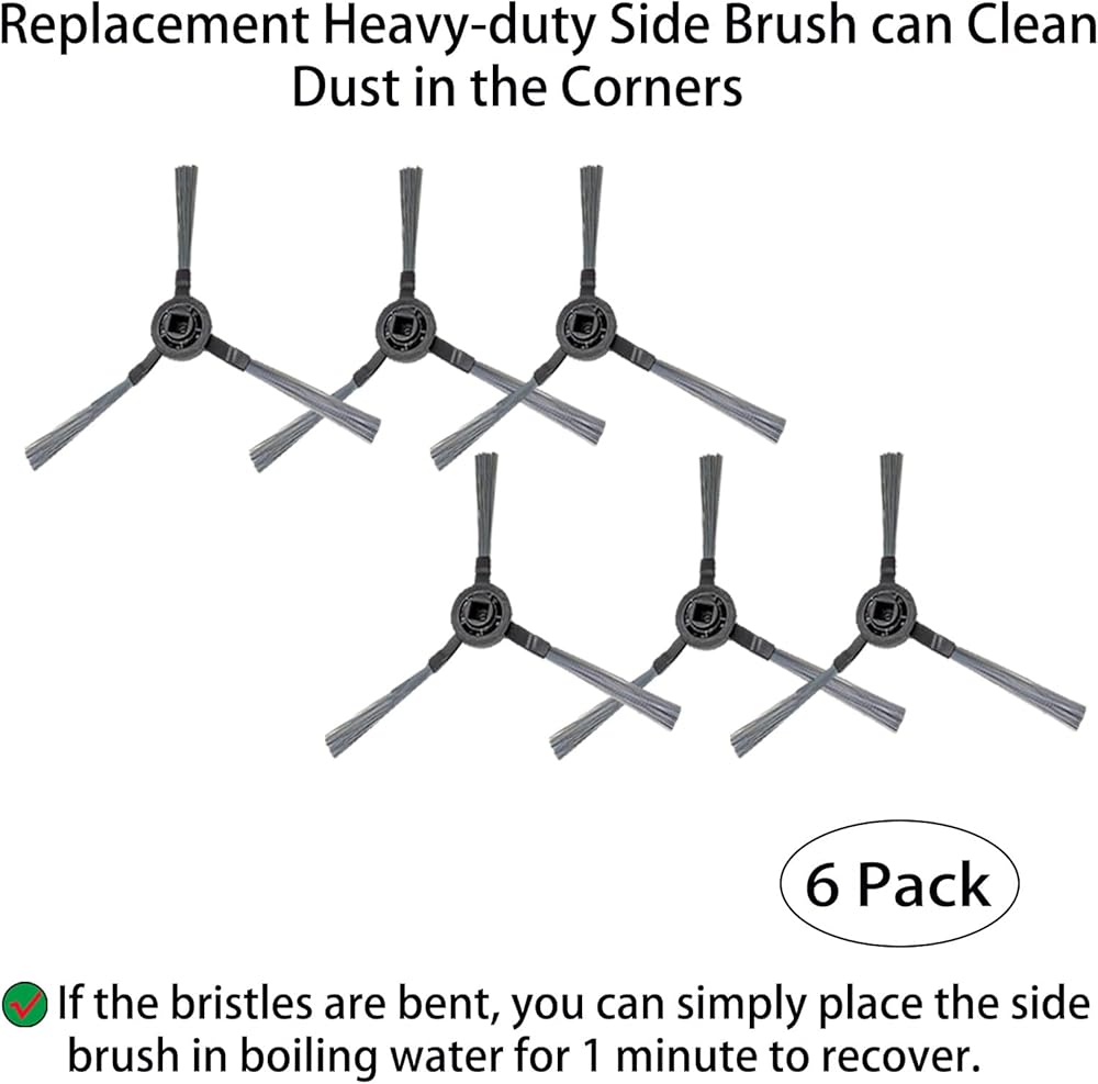 Side Brushes & HEPA Filters: Side brushes reach corners; bent bristles recover with 1-minute boiling water soak. HEPA filters trap fine dust and absorb odors
