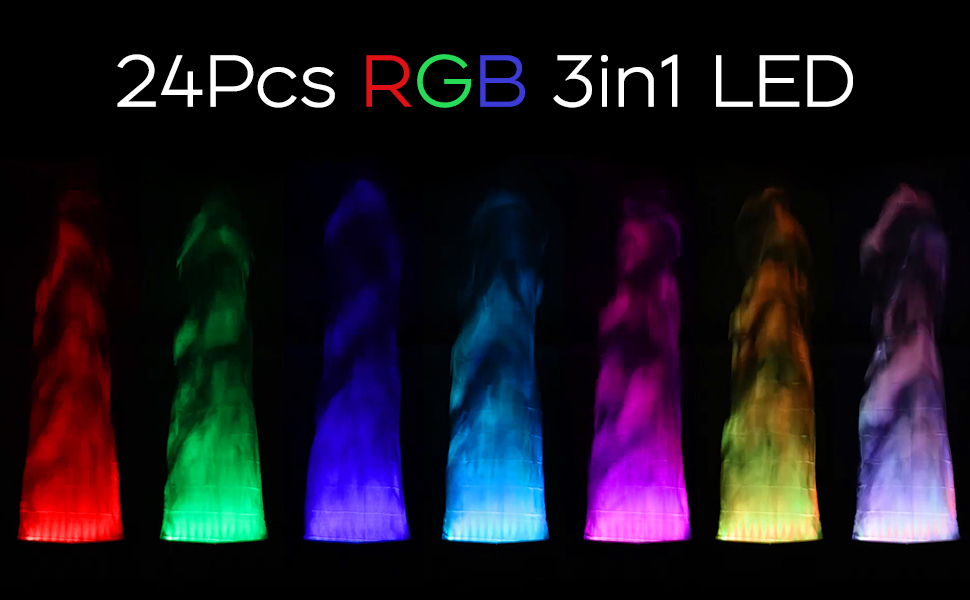 Powerful RGB LED Lights & DMX Function: - The fake flame lamp has 24pcs ultra bright RGB 3in1 LED lights. RGB can be mixed into 7 colors, choose your preferred light color. Vivid Silk Flame Effect creates the unique and safe illusion of real and flickering fire. Equipped with DMX function to control lights color (Not included DMX contorller).