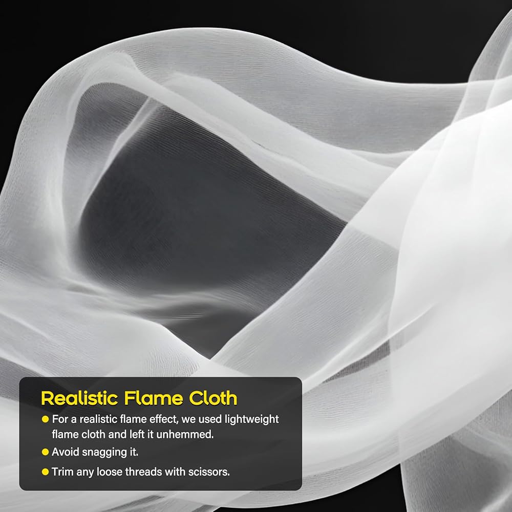 3D Vivid Fake Fire Flames: - TCFUNDY fake fire light create a beautiful flickering silk flame, flame-less and no heat and no dangers of real fire, The flame flashing effect is lifelike and vivid. Built-in double air blowers for strong wind and the flame height of up to 1.2m/4ft.