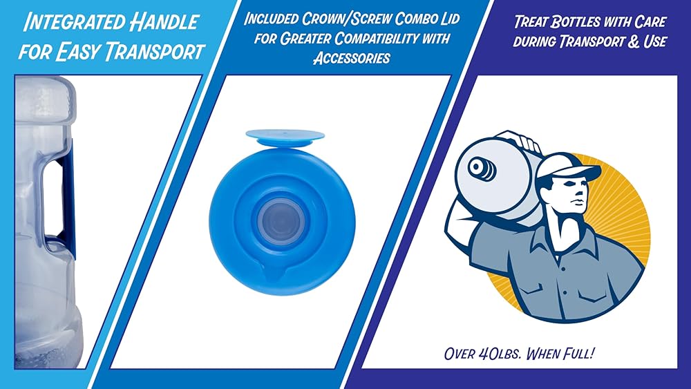 Conveniently Portable: With an integrated handle and screw top design, the 5 Gallon bottle is designed for easy transportation and installation