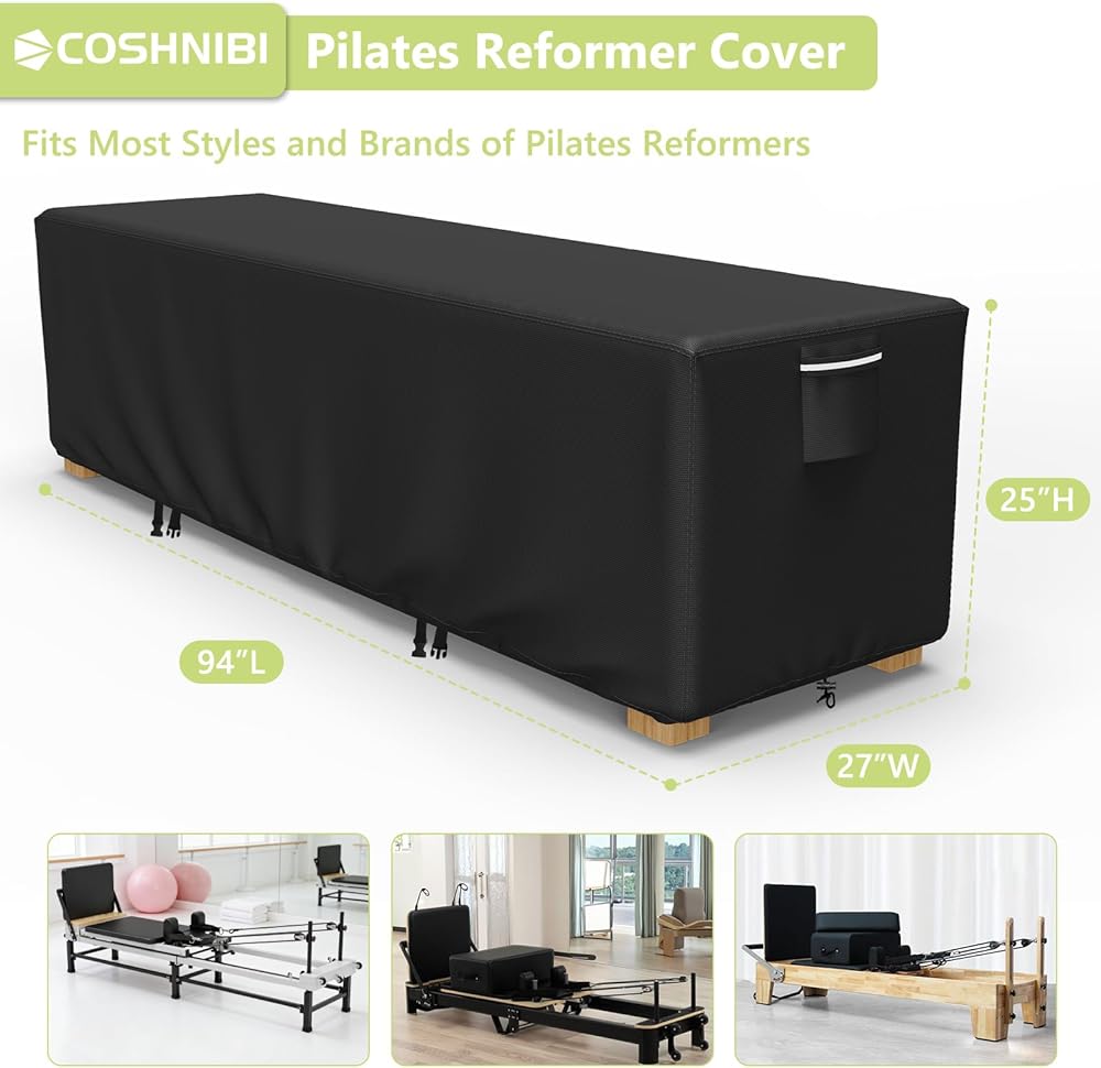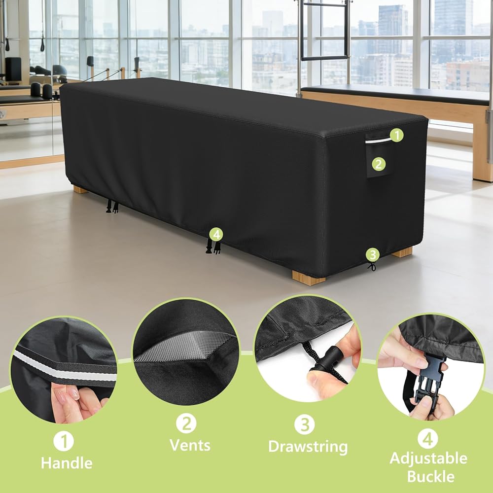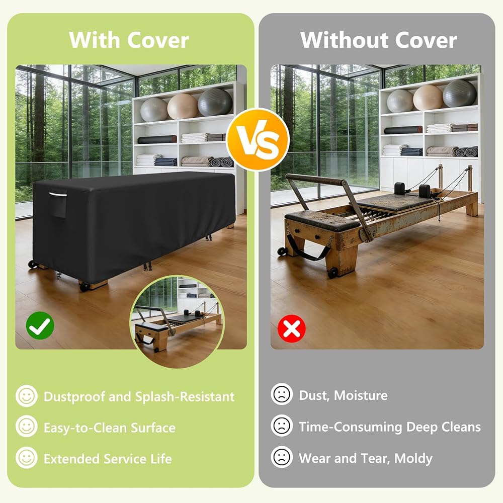 [Precision Fit]:Pilates Reformer Cover :94"L × 27"W × 25"H for reformers.Seamless fit blocks dust&moisture; full coverage protects all parts, keeping equipment pristine.