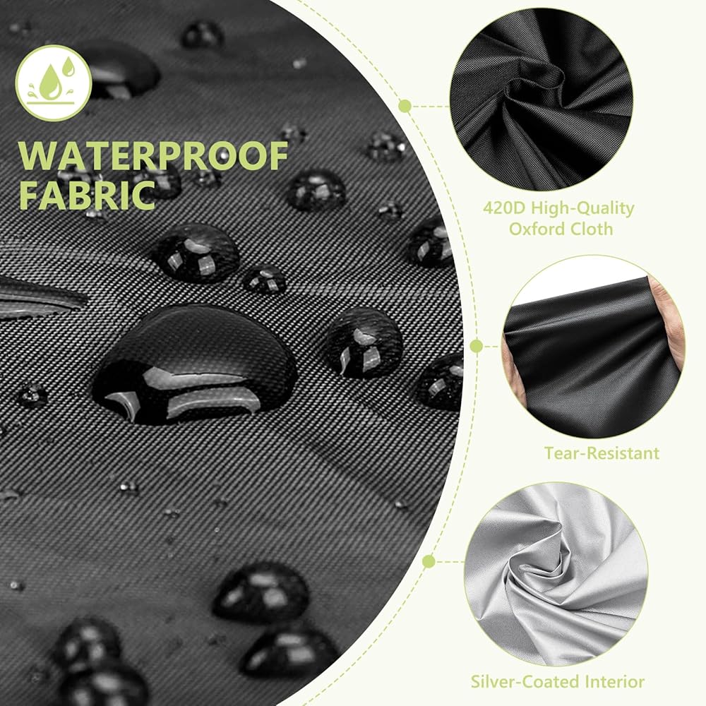 [Windproof and Secure]:Featuring a drawstring at the base and two sets of buckle straps, this dual-fixing design ensures the cover remains firmly in place under all conditions. It effectively withstands strong winds, preventing slippage or lifting, eliminating gaps, and providing reliable protection.