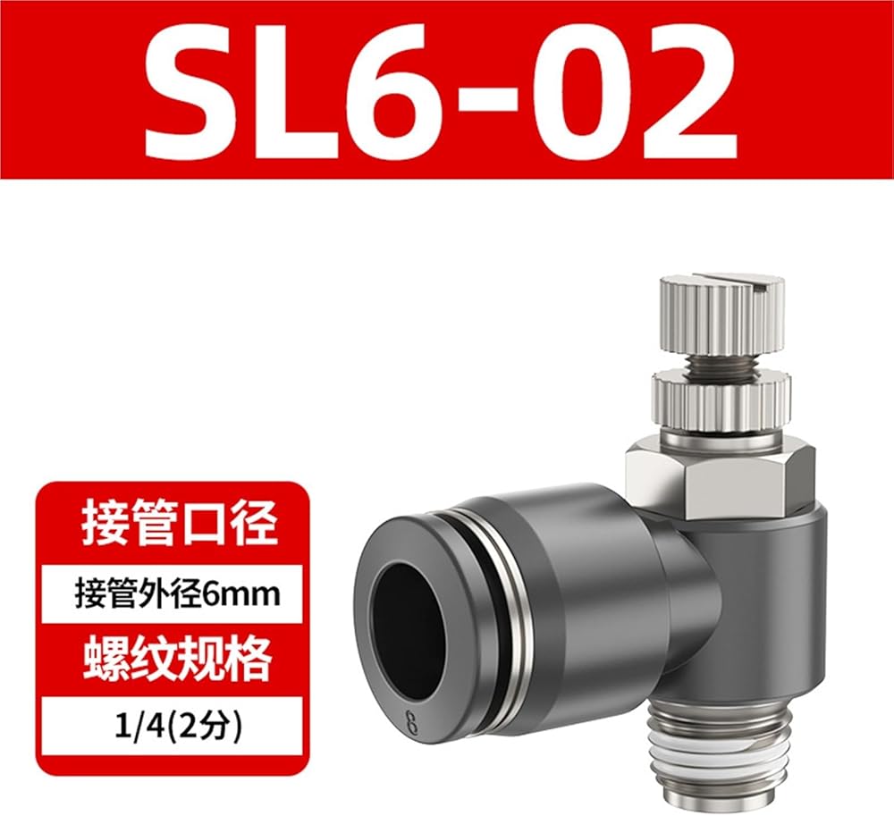 Tracheal Quick Connector Speed Control Switch Regulating Valve Throttle Pneumatic Adjustable Cylinder SL6/8/01/01/M510 1Pcs(黑色SL6-02(高端))