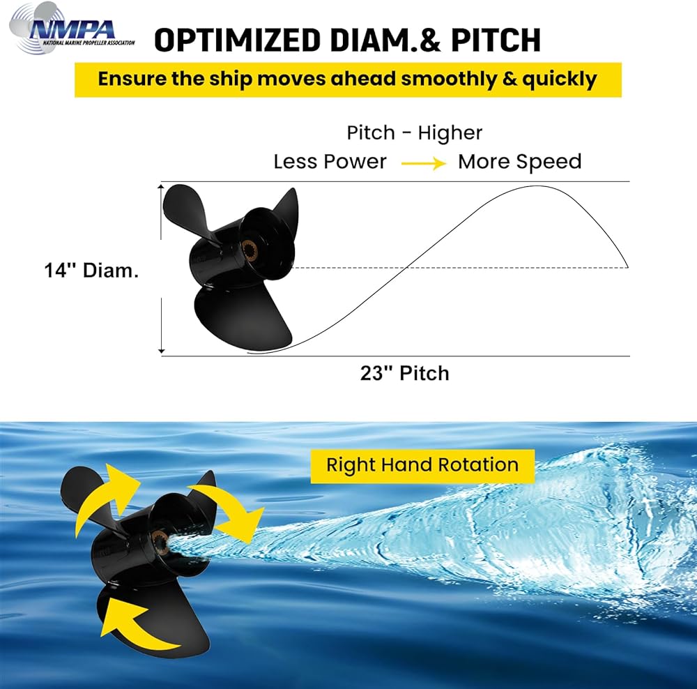 4.Sold As Seen In Pictures:Propeller comes exactly as pictures showing ;Better speed and save money for you! Will fit your boat well and easy to install