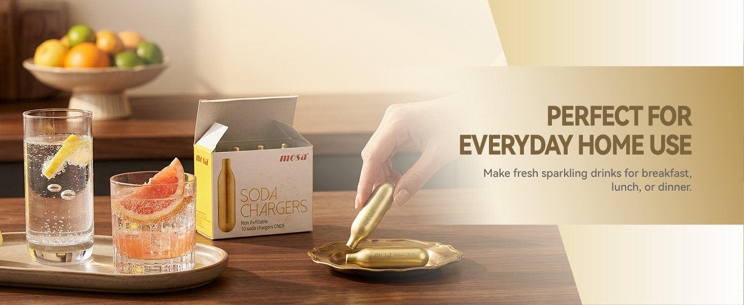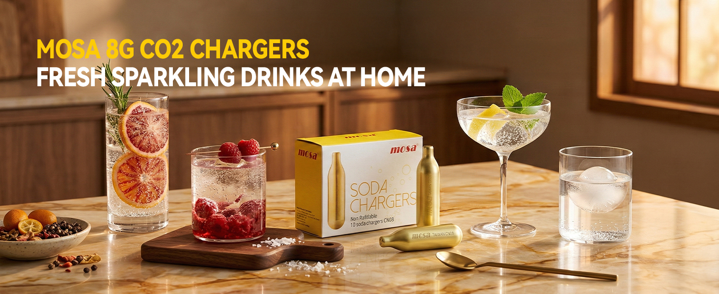 Food-Grade CO₂ for Sparkling Drinks Made with food-grade CO₂, these mosa 8g CO2 chargers are designed for making sparkling water and soda drinks at home. Enjoy clean, crisp carbonation for refreshing beverages anytime.