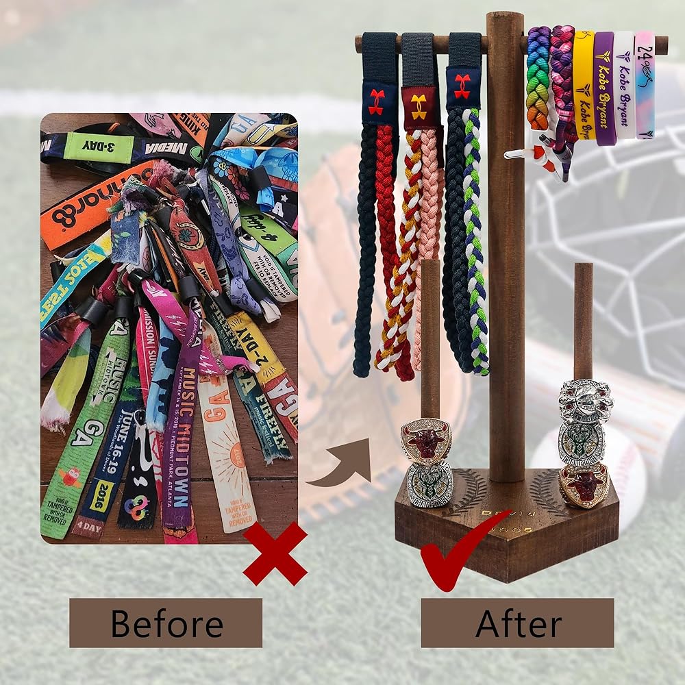 Showcase Your Collection Like a Pro:Ideal for the serious athlete or collector. Securely organize and exhibit multiple sports rings, medal displays, and silicone wristbands without tangling. The stable, non-scratch base prevents sliding and damage, making it a professional-grade display for your hard-earned gear at home, in the office, or in a trophy case.