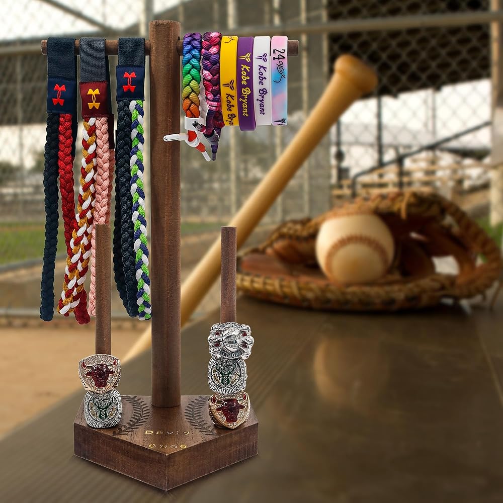 Wooden Baseball Ring Holder Display Stand - Championship Ring Organizer for Men