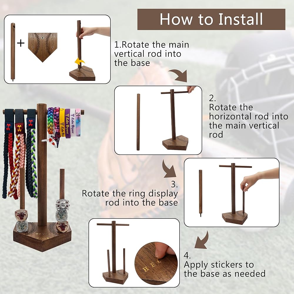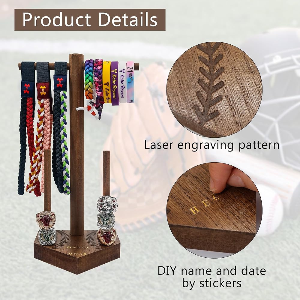 Baseball and Softball Ring Holder for Softball Sports Jewelry,Championship Ring Display Case for Baseball Drip,Jewelry Organizer for Baseball Accessories and Necklace,Sport Bracelet