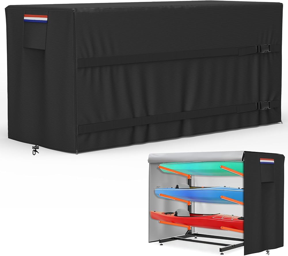 【Large Capacity】This kayak rack cover easily accommodates 2-4 layers of freestanding kayak racks, with the largest kayak size being 12 feet. Please note: This cover is not suitable for wall-mounted kayak racks.