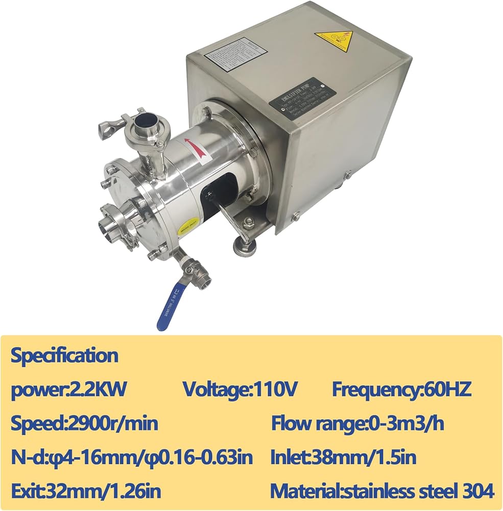 High-shear Emulsifying Pump Pipeline Single Stage Pipeline Emulsion Pump with Flow Range 0-3m³/h and 2900r/min for Mixing Dispersion and Emulsification 110V 2.2KW